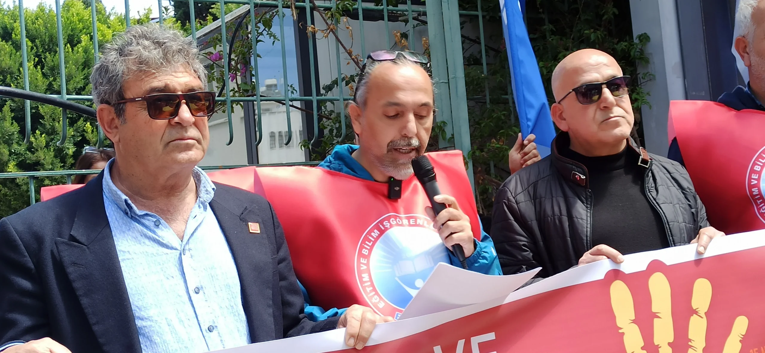 Eğitim İş Sendikası İskenderun Şube Başkanı Hasan Kuş çok sayıda öğretmenin hiçbir gerekçe gösterilmeden yıllardır görev yaptığı okullardan sürgün edildiğini, uygulamaların hem hukuki zeminden yoksun hem de eğitimin doğasına aykırı olduğunu savundu.