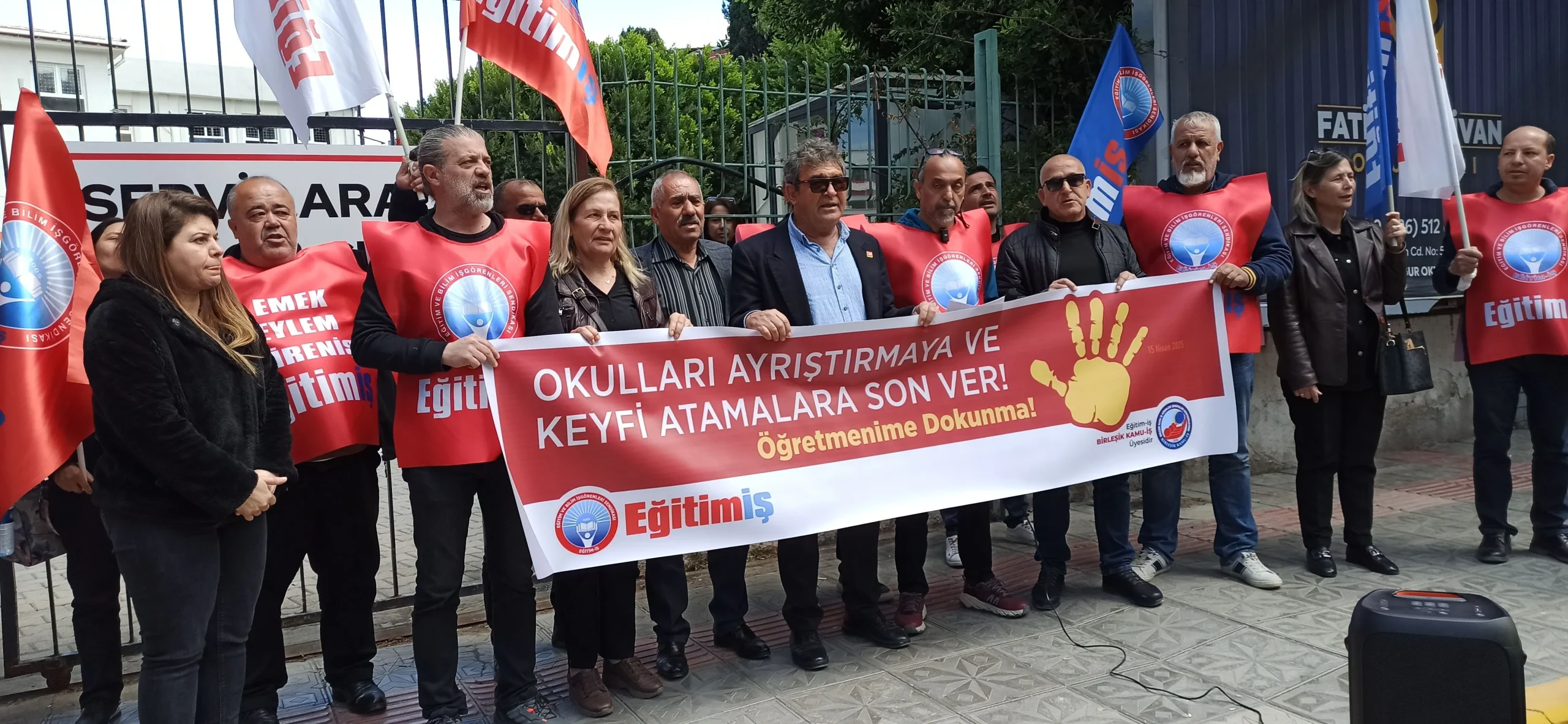 Son dönemde proje okulları kapsamında yaşanan öğretmen atamaları ve yer değişikliklerine sert tepkiler sürüyor. Eğitim İş Sendikası İskenderun Şube Başkanı Hasan Kuş, sendika üyeleri ve Cumhuriyet Halk Partisi (CHP) İskenderun Belediye Meclis üyeleriyle birlikte İstiklal Makzume Anadolu Lisesi önünde basın açıklaması gerçekleştirdi.