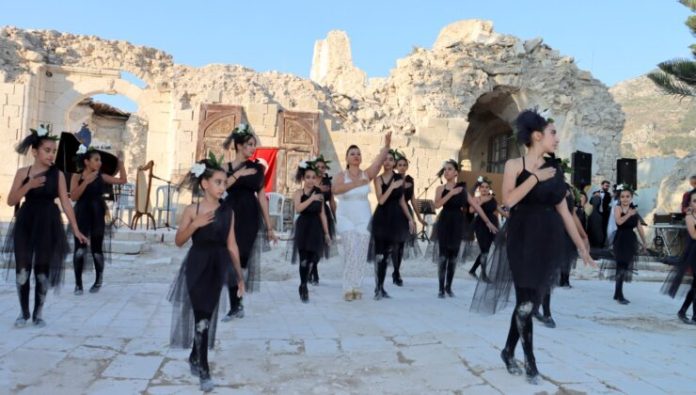 Etkinliğin en duygu yüklü anlarından biri, Hatay’ın MEB onaylı tek sanat akademisi olan Fatma Satar Müzik Resim ve Bale Akademisi öğrencilerinin sahneye çıkışı oldu. Kilisenin yıkıntıları arasında ayakta kalmayı başaran tarihi merdivenden beyaz giysiler içinde bir meleğin ezan, çan ve hazan sesleri eşliğinde sahneye inişiyle başlayan “Antakya’nın Ağıdı” adlı bale gösterisi izleyicilere unutulmaz anlar yaşattı.