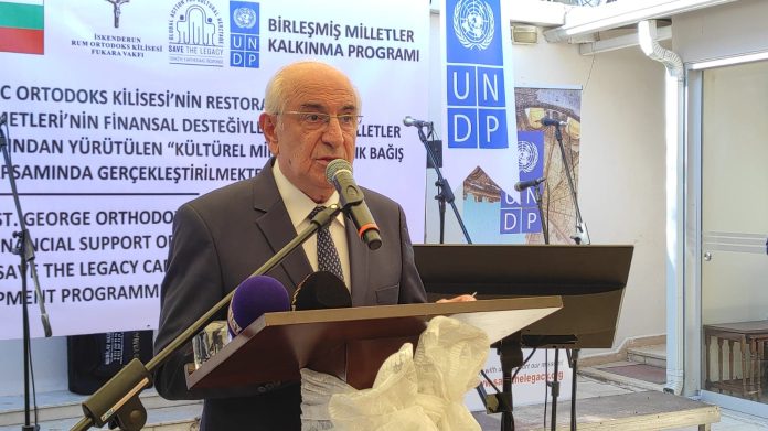 Depremde hasar gören bu tarihi varlık Aziz Corç Kilisemizin restore edilmesi konusunda başta Turizm ve Kültür Bakanlığımız olmak üzere, bölgeyi tüm çeşitliliği ile restore etme taahhüdünü memnuniyetle karşıladığımız UNDP’nin mirası kurtarma bağış kampanyasında başarılı ve özverili katkıları ile desteklerinden dolayı Türkiye Mukim Temsilcisi Sayın Vinton’a, destekleri için Romanya ve Bulgaristan hükümetlerine ve aramızda bulunan büyükelçilerine huzurlarımızda şükranlarımızı sunuyorum” şeklinde konuştu.