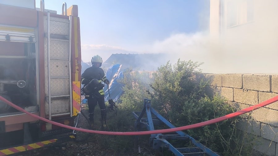 Hatay’da odunlukta çıkan yangında tüpler patlamadan çıkarıldı.