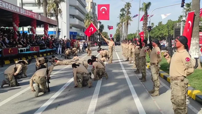 29 Ekim Cumhuriyet Bayramı İskenderun’da Atatürk Bulvarı tören alanında sabah saat 10.00’da başladı. İskenderunlunun yoğun ilgi gösterdiği tören alanında resmigeçit töreni öncesi Komando birliği silahlı gösterisi büyük bir dikkatle izlendi.