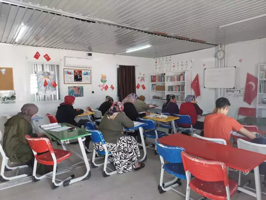 Antakya ilçesinde konteyner kentte Antakya Nedime Keser Halk Eğitim Merkezi Müdürlüğü tarafından okuma yazma bilmeyen vatandaşlara yönelik kurslar sürüyor.