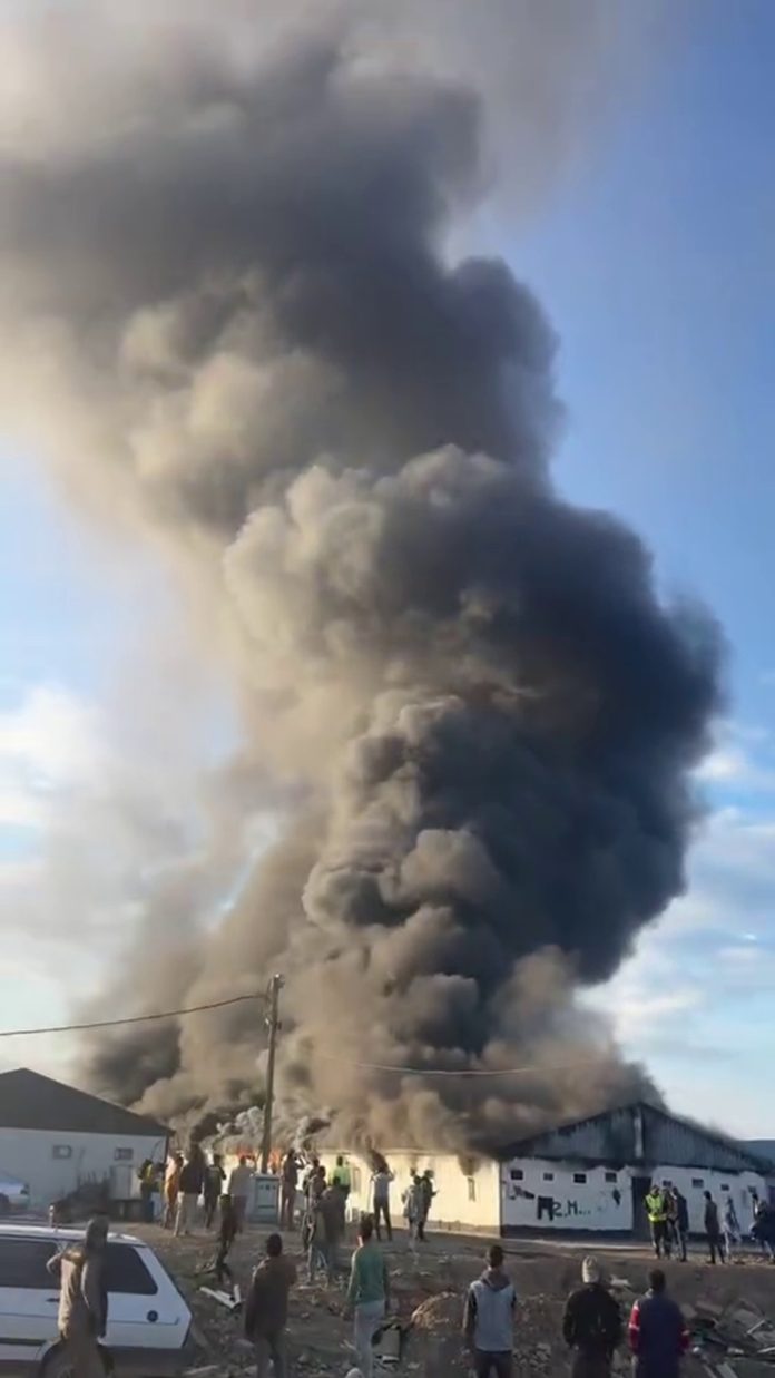 Hatay’da şantiye alanında işçilerin kaldığı konteyner yatakhane alevlere teslim oldu.