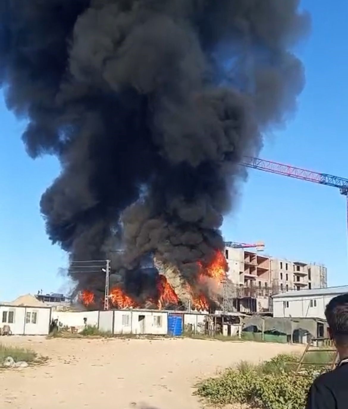 Hatay’da şantiye alanında bulunan konteyner yatakhaneler alevlere teslim oldu. Yangın, itfaiye ekiplerinin müdahalesiyle kontrol altına alındı.