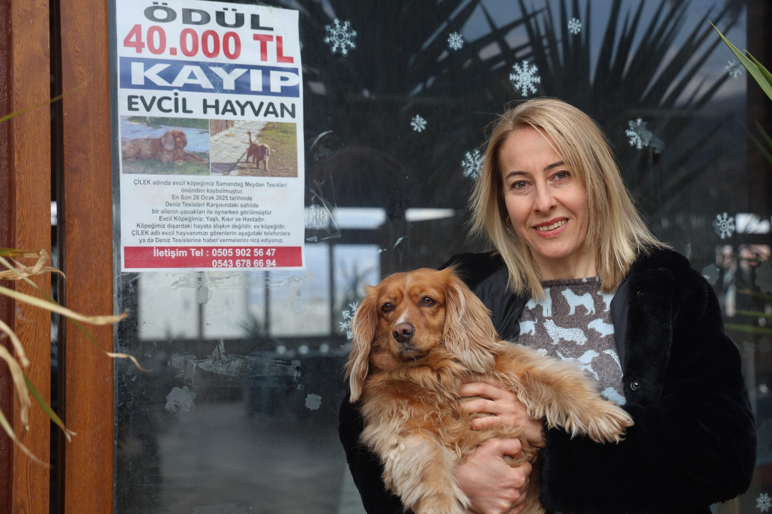 Hatay’ın Samandağ ilçesinde yaşayan Nergis Ekşi, 8 yıldır besledikleri ‘Çilek’ isimli İngiliz Cocker cinsi köpeklerini bulana, getirene veya yerini söyleyene 40 bin TL ödül vereceklerini belirten afişlerle kayıp köpeğini arıyor.