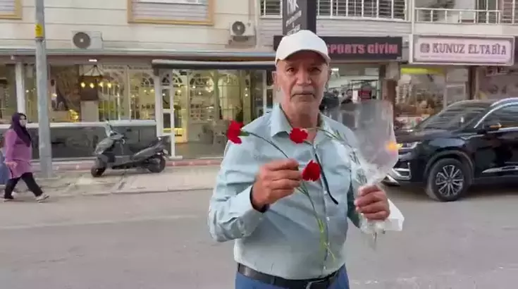 Ahmet Kayak, ilçede bazı caddelerde trafikte kurallara uyarak seyreden sürücüleri durdurarak karanfil takdim etti. Bu davranışı ile dikkatleri üzerinde toplayan Kayak, “Sinyal kullanan sürücüler başımın tacıdır” dedi.