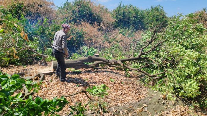 Hatay’da don afetinde zarar gören ve kuruyan narenciye ağaçları, yerlerine yenileri dikilmesi için çiftçiler tarafından kesildi.