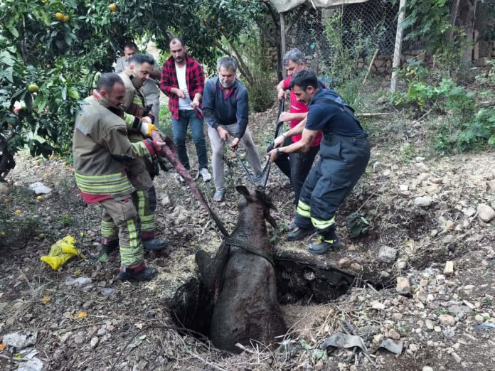 Hatay’da kuyuya düşen inek itfaiye ekipleri tarafından kurtarıldı.
