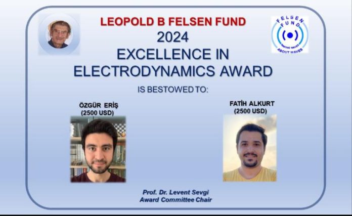 Leopold B. Felsen Vakfı tarafından, 2005 yılında vefat eden Prof. Dr. Leopold B. Felsen’in vasiyeti doğrultusunda Türk öğrencilerin/araştırmacıların yurtiçindeki elektromanyetik alanındaki çalışmalarından kaynaklanan yayınları ve bireysel katkılarına belirli oranda öncelik gösterilerek verilen Leopold B. Felsen Elektromanyetikte Üstün Başarı Ödülü’ne bu yıl çalışmaları ile Elektrik-Elektronik Mühendisliği Bölümü araştırma görevlisi Dr. Fatih Özkan Alkurt layık görüldü. Türkiye’de elektromanyetik alanında çalışan öğrenciler ile unvanlarını son 5 yılda almış olan doktoralı araştırıcıların başvurularının kabul edildiği Üstün Başarı ödülü için Arş. Gör. Dr. Alkurt, 2500 USD ödül kazandı.