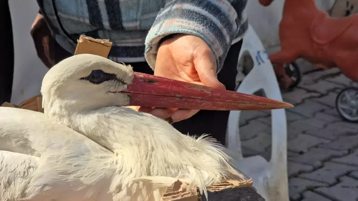Samandağ ilçesinde av tüfeğiyle vurularak yaralanmış halde bulunan leylek koruma altına alındı.