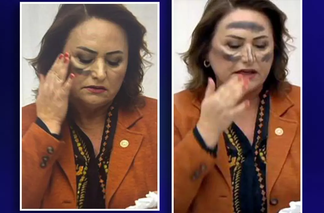 Madenlerin halkın malı olduğunu belirten Müzeyyen Şevkin, yanında getirdiği siyah boya ile yüzünü boyamaya başladı. Şevkin, “Şu karayı Soma’da ölen madenciler için, şu karayı Amasra’da ölen madenciler için, bu karayı İliç’te ölen madenciler için, bu karayı da alnıma sürüyorum koruyamadığımız bütün madencilerimiz için. Bu kara hepimizin alnının karasıdır” dedi.