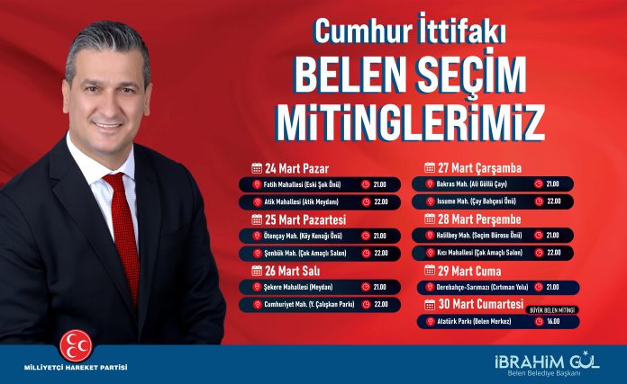 Yaptığı açıklamada şu ifadelere yer veren Belen Belediye Başkanı İbrahim Gül,” Belen’in her bir köşesine eşit hizmet etmenin huzuruyla yeni bir seçime giriyoruz. Halkımızın ihtiyaç ve beklentilerini doğrudan dinlemek, onların taleplerini anlamak ve çözüm üretmek, bizim için esastır. Bu nedenle, mahalle mitingleri bizim için çok önemli bir iletişim platformu olacak.