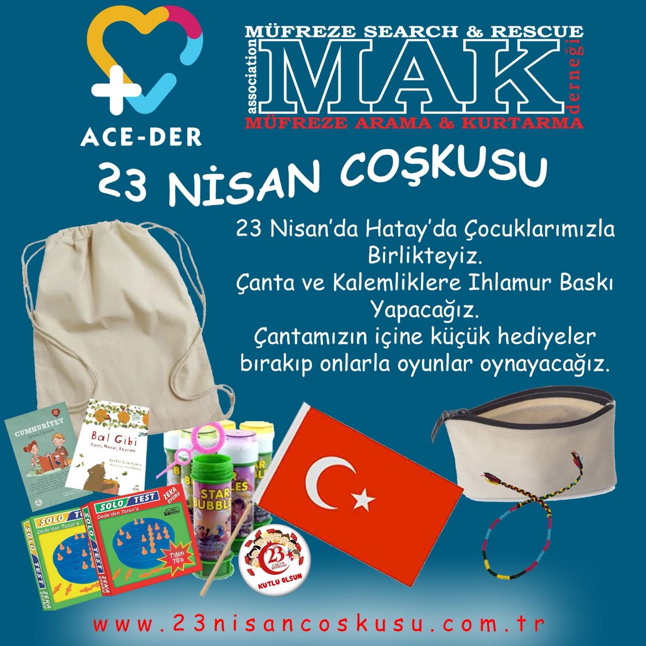 MAK ve ACE-DER yetkilileri tarafından yapılan açıklamada 6 Şubat 2023 depremlerinden sonra bölgeyi terk etmediklerini Arama Kurtarma faaliyetlerinden sonra İnsani Yardım faaliyetlerinin hızlıca başladığını ve devam ettiğini bildirdiler. 6 Şubattan bu yana bölgede su deposu, saha dağıtımı, aşevi, okul projesi faaliyetlerini tamamlayıp, hale hazırda yürüttükleri yardım projelerinin de devam ettiğini söylediler. Yardımlar kapsamında 23 Nisan Ulusal Egemenlik ve Çocuk Bayramı’nda Hatay’da depremzede çocuklarla beraber hem öğretici hem kültürel hem de eğlenceli vakit geçireceklerini söylediler.