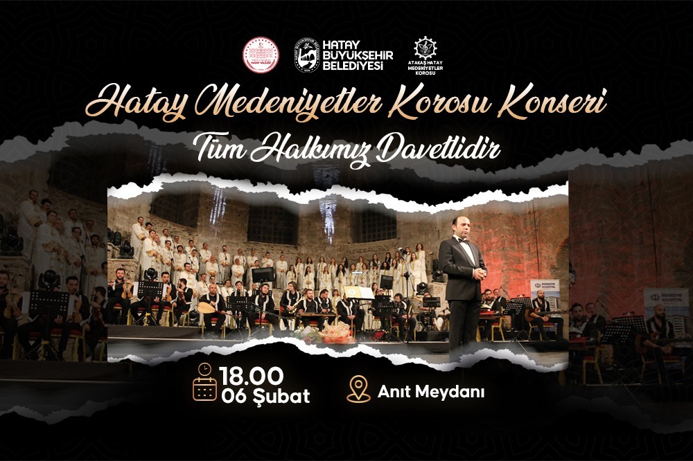 Hatay Valiliği, Hatay Büyükşehir Belediyesi (HBB), Hatay Medeniyetler Korosu iş birliğiyle 6 Şubat 2023’te yaşanan depremlerin üçüncü yıl dönümünde, hayatını kaybeden vatandaşları anmak amacıyla özel bir konser düzenleyecek.