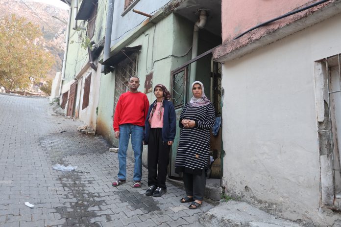 Antakya ilçesi Hacı Ömer Alpagot Mahallesi’ne 2012 yılında taşınan 50 yaşındaki Nuriye Dülger, 4 bin TL kira ödediği banyosu olmayan tek odalı evinde 4 kişilik ailesiyle yaşamını sürdürüyor. Rahatsızlığından dolayı eşi çalışamayınca kendisi zaman zaman gündelik işlere giderek para kazanan Dülger, kızı Meryem’in engelli maaşı ve bakıcı parasıyla evinin kirasını ödüyor. Evin durumunun çok kötü olduğunu ev sahibine bildiren Dülger, “Evi istemiyorsan çık” sözleri karşısında çaresiz kalarak yaşamını tek odalı evinde devam ettirdi. Banyosu olmayıp tuvaleti dışarda olan tek odalı evde 13 yıldır yaşayan Dülger, en büyük hayalinin çocukları için temiz odaları olan güzel bir ev olduğunu söyledi.