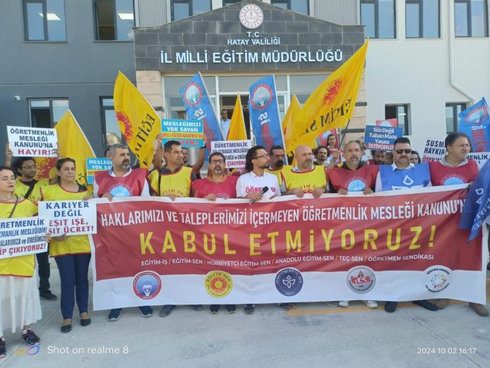 Eğitim-İş , Eğitim-Sen Hürriyetçi Eğitim Sen , Anadolu Eğitim Sendikası ile TEÇ-SEN Öğretmen Sendikası Öğretmenlik Meslek Kanununa karşı ortak bir basın açıklaması yaptı.