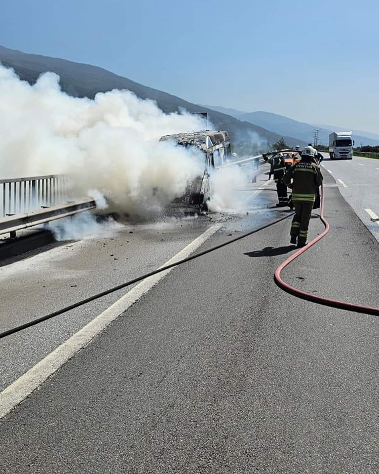 Payas İlçesi  Tem Otoyulu Üzerinde Seyir Halindeki Minibüs Birden Alev Aldı.