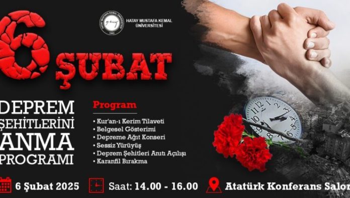 Ayrıca, 6 Şubat 2025 tarihinde “Deprem Şehitlerini Anma Programı” düzenlenecek. Atatürk Konferans Salonu’nda saat 14:00’te başlayacak etkinliklerde, Kur’an-ı Kerim tilaveti, belgesel gösterimi, deprem ağıt konseri, sessiz yürüyüş ve deprem şehitleri anıtının açılışı gibi anlamlı programlar yer alacak. Katılımcılar, kaybedilen canlar için karanfil bırakacak.