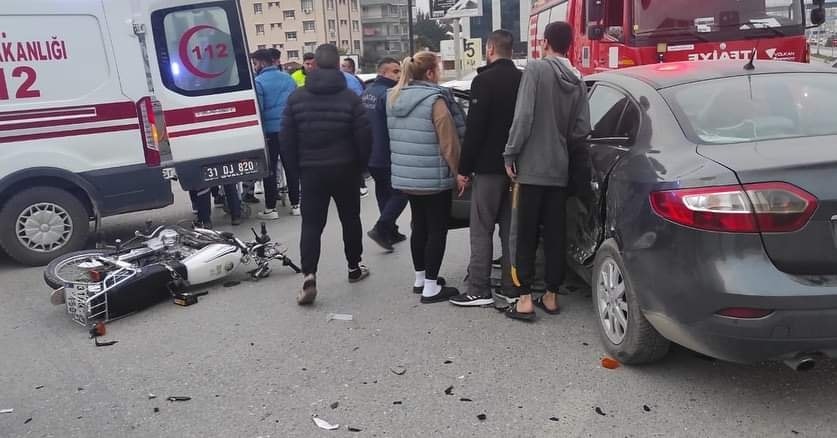 İskenderun İlçesi İsmet İnönü Mahallesinde Otomobil ile Motosikletin Karıştığı Trafik Kazası Meydana Geldi .