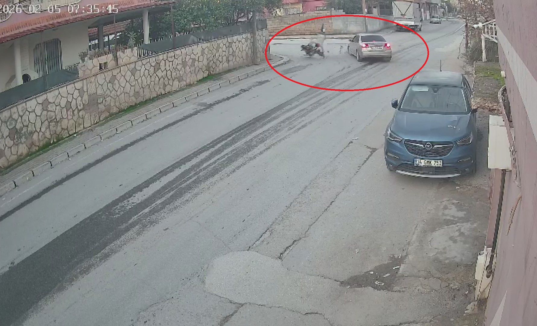 Kaza, Reyhanlı ilçesi Bahçelievler Mahallesi Fevzi Tecirli Caddesinde sabah 07.00 sularında yaşandı. Seyir halinde ilerleyen H.A. idaresindeki 31 AAG 371 plakalı Honda marka otomobil, sola doğru manevra yaptığı esnada karşıdan gelen M.N.C yönetimindeki 31 APC 260 plakalı Kuba marka motosikletle çarpıştı. Otomobille çarpışan motosiklet sürücüsünün takla atarak metrelerce havaya savrulduğu anlar kameraya yansıdı. Görüntülerde; otomobille çarpışan motosiklet sürücüsünün havaya savrulduğu anlar yer aldı. Kazayı gören vatandaşların durumu 112 Acil Çağrı Merkezi’ne bildirilmesi üzerine olay yerine polis ve ambulans ekipleri sevk edildi. Kısa sürede bölgeye gelen sağlık ekipleri yaralıya ilk müdahalenin ardından Reyhanlı Devlet Hastanesi’ne kaldırıldı. Yaralı motosiklet sürücüsünün hastanede tedavisinin devam ettiği öğrenildi.
