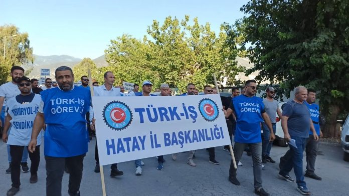 Türk İş’e bağlı sendikaların üye işçilerinin katılımıyla, İskenderun Tren Garından Sendikanın bulunduğu Mete Aslan Bulvarındaki binanın önüne kadar sloganlar atılarak yürüyüş yapıldı. Türk İş Hatay İl Başkanı Çakır Varan işçilere hitaben burada yaptığı açıklamada, geçtiğimiz hafta 81 ilde eş zamanlı olarak işyerlerinin önünde bildiri okunarak başlatılan eylemlerin bir sonraki adımına geçtiklerini belirterek, meydanlara indiklerini ve kitlesel ses yükselteceklerini ifade etti.