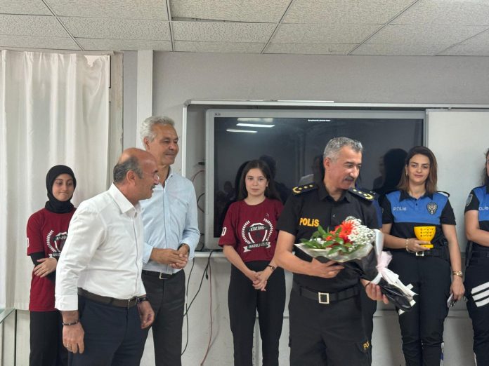Anket sonucunda en güvenilir ve en başarılı kurum olarak seçilen Dörtyol İlçe Emniyet Müdürü Dinsever Dinçer Kalkan ve Emniyet mensupları 5 Haziran 2025 Perşembe günü okula davet edilerek Pisagorun Adalet Kupası ve çiçek takdimi yapıldı.