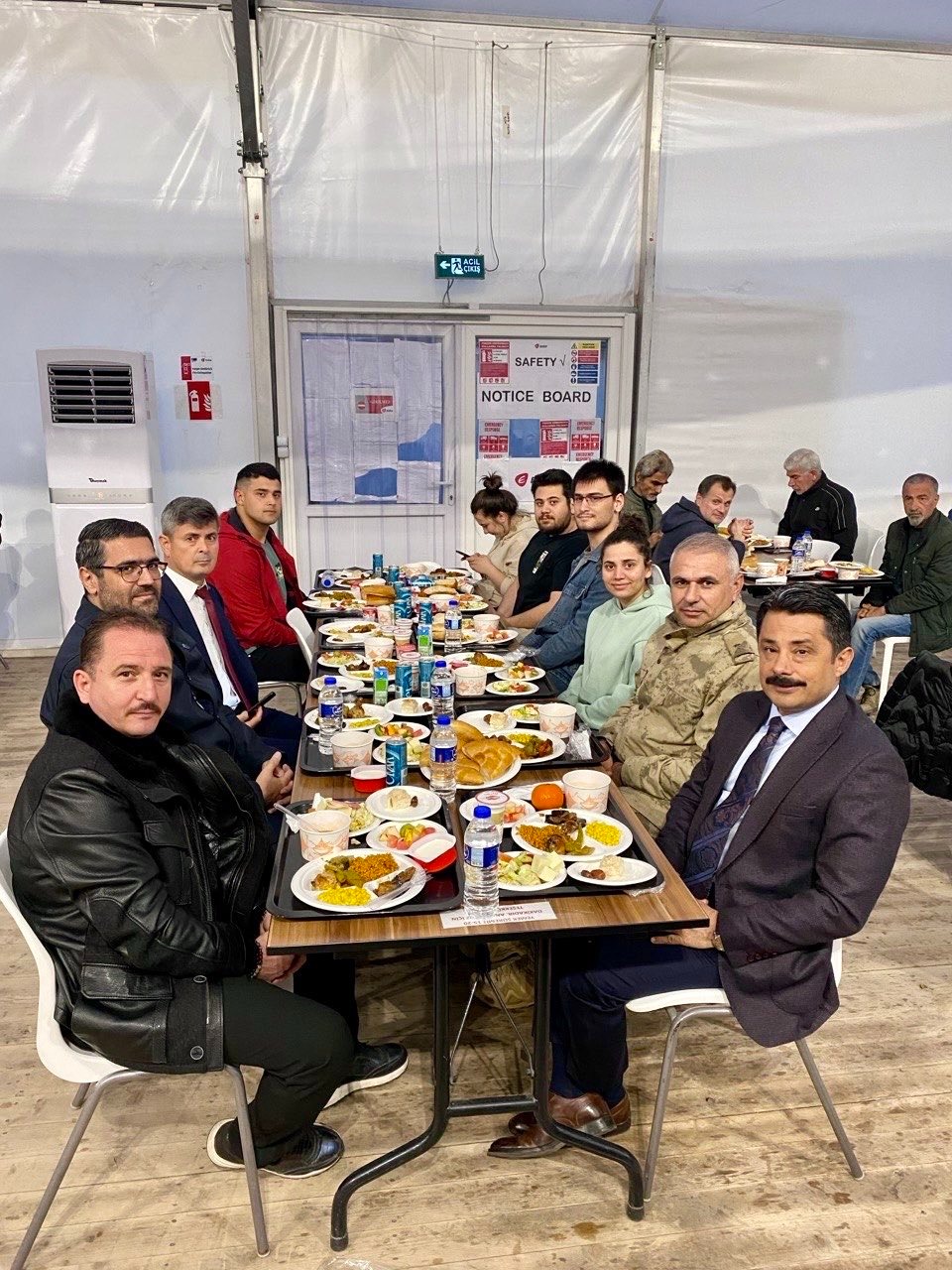 “İftarda; NATO tarafından depremzede vatandaşlarımız için kurulan yerleşkede İSTE Rektörümüz Sn. Prof.Dr.Tolga Depçi ve Jandarma Komutanımız Sn.Yusuf Yıldırım’la birlikte üniversite öğrencilerimiz ve vatandaşlarımızla aynı sofradaydık.