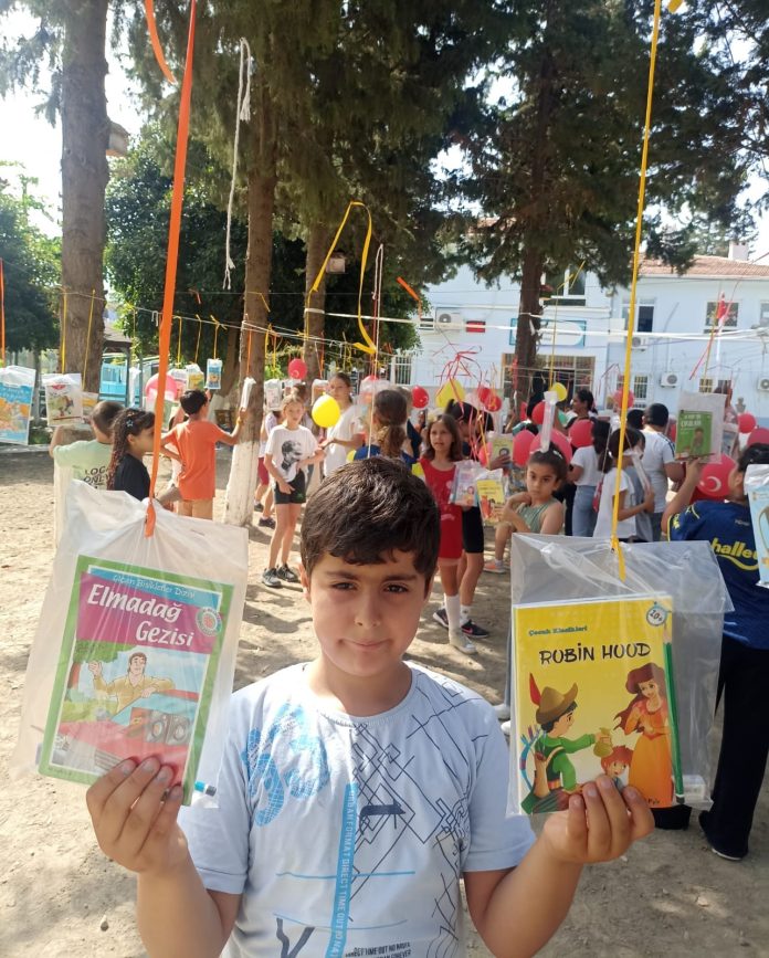 Şehit Umut Sakaroğlu İlkokulu‘nca düzenlenen etkinlikte, ağaçlara asılan bin kitap öğrenciler tarafından toplandı.