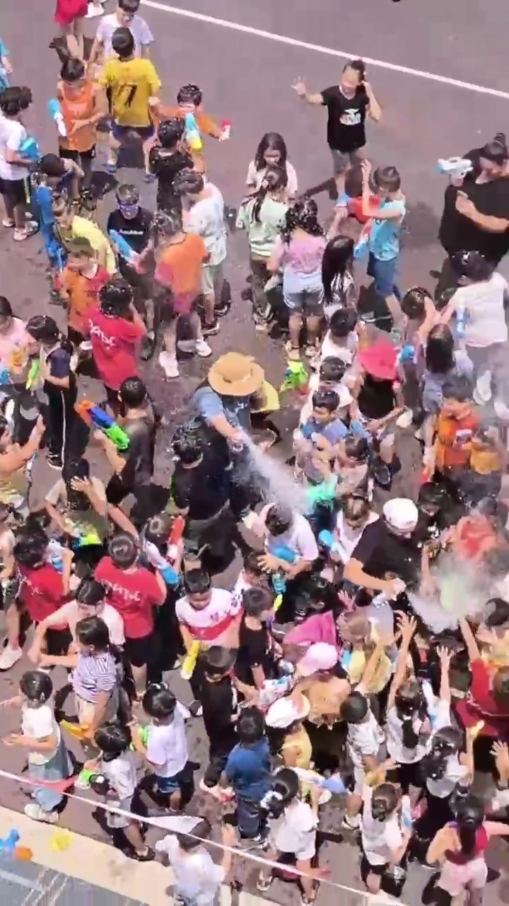 Hava sıcaklığının 40 dereceyi bulduğu Hatay’da sıcaktan bunalan öğrenciler, öğretmenleri ile su savaşı yaparak serinledi. Saatler süren su savaşında öğrenciler ve öğretmenler tepeden tırnağa ıslanırken, ortaya renkli görüntüler çıktı.