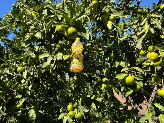 HATAY’da lise öğrencileri, tarımsal ihracatta ciddi ekonomik zararlara yol açan Akdeniz meyve sineğiyle mücadele için proje hazırladı. Öğrencilerin kimyasal içermeyen maddelerle pet şişelere yaptığı tuzakları kullanan çiftçiler, ürünün faydalı olduğunu söyledi.