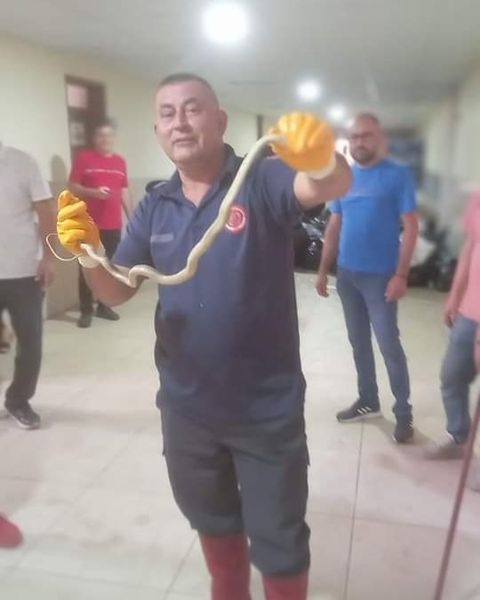 Hatay’ın Payas ilçesinde Okula giren yılan, itfaiye ekiplerince yakalanarak doğaya bırakıldı.