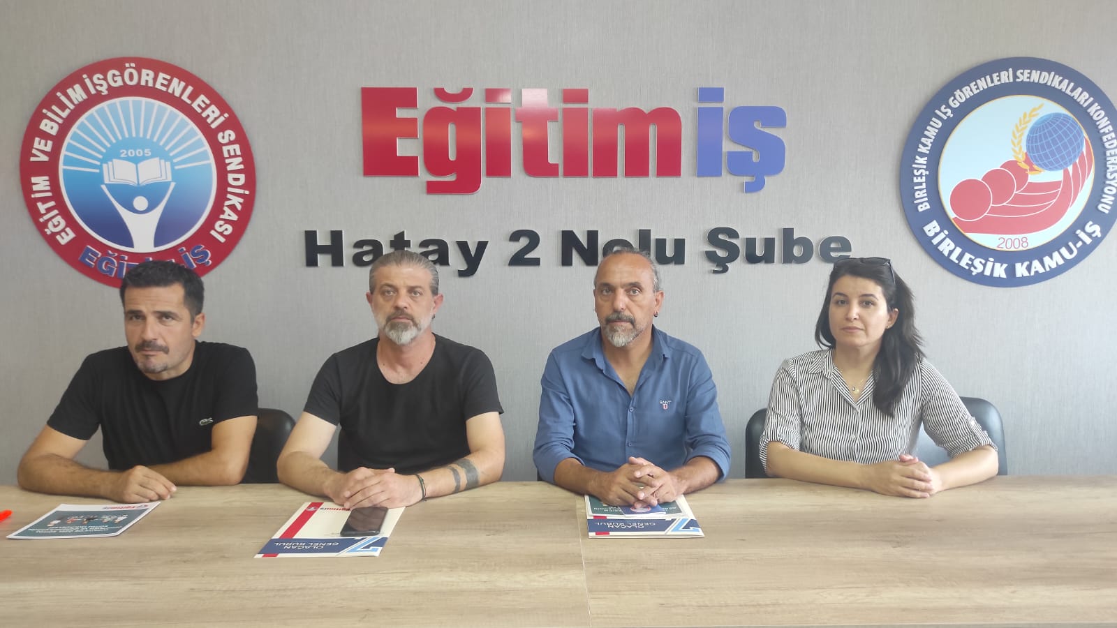 Eğitim İş Sendikası Hatay 2 Nolu Şue Başkanı Hasan Kuş, yönetim kurulu üyelerinin de katılımıyla, sendika binasında yaptığı basın açıklamasında, kent genelinde eğitim veren okullarda yaşanan hijyen sıkıntılarına dikkat çekti.