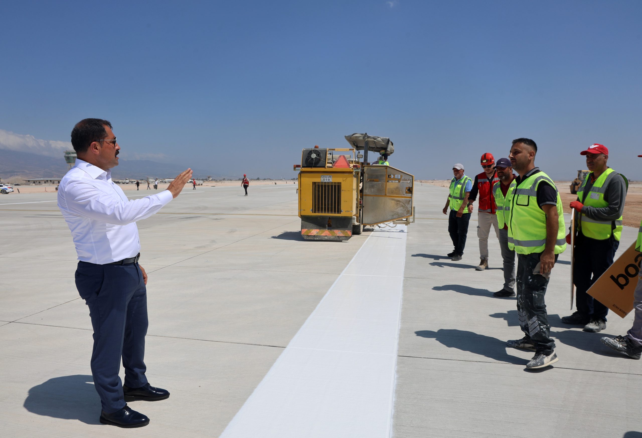Asrın felaketinde yerle bir olan Hatay’da depremin izleri siliniyor. Depremde hasar gören Hatay Havalimanı’nda kısa sürede onarım çalışması başlamış ve yeniden uçuşlara açılmıştı. Havalimanındaki PAT Sahaları Onarımı ve Gelişimi Projesi kapsamında uçuşlara 1 Ağustos – 1 Eylül arasında ara verilmişti. Hatay Valisi Mustafa Masatlı, havalimanındaki çalışmaları yerinde inceleyerek açıklamalarda bulundu.