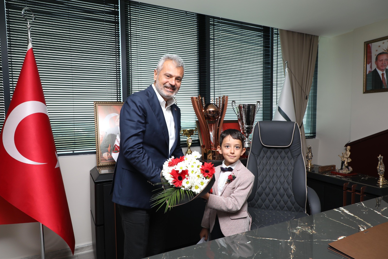 Hatay Büyükşehir Belediye Başkanı Mehmet Öntürk, 23 Nisan Ulusal Egemenlik ve Çocuk Bayramı’nda makamını küçük Eymen Kahan’a devretti.