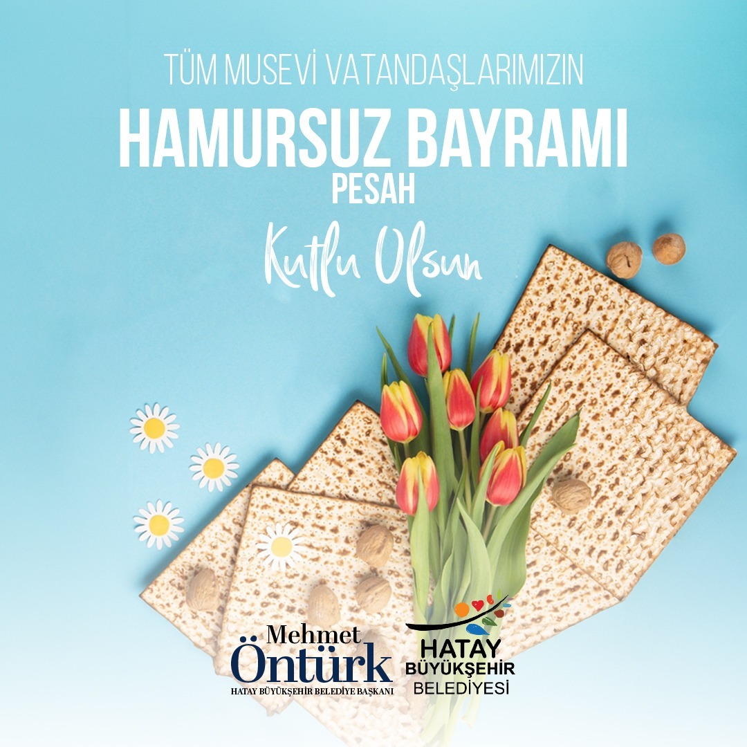 Hatay Büyükşehir Belediye Başkanı Mehmet Öntürk, bir mesaj yayımlayarak ilimizde yaşayan Musevi vatandaşlarımızın Hamursuz Bayramı’nı kutladı.