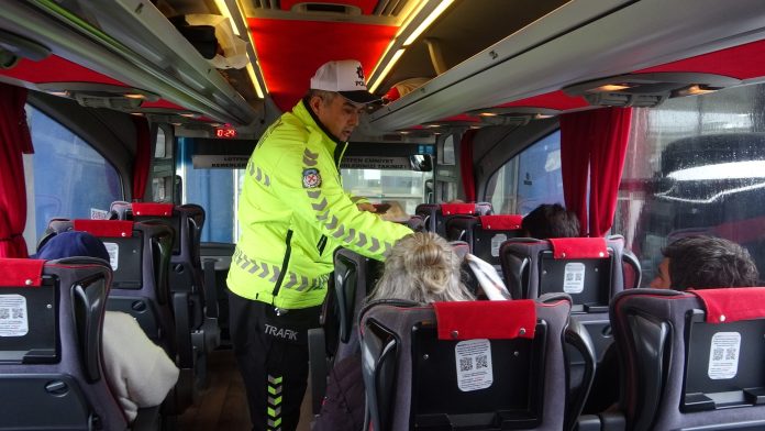 HATAY (İHA) – Hatay’da İl Emniyet Müdürlüğü’ne bağlı Trafik Denetleme Şube Müdürlüğü ekipleri, Ramazan Bayramı öncesinde otobüs terminalinde denetim gerçekleştirilirken yolculara emniyet kemerinin önemini anlatan bilgilendirici broşürler dağıttılar.