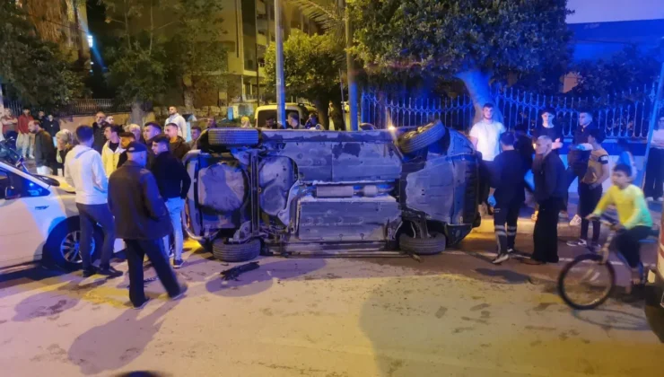 Otomobil devrilerek yan yattı