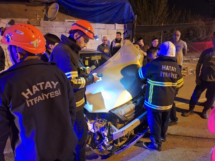 Hatay’da aydınlatma direğine çarpan otomobildeki 2 kişi yaralandı.