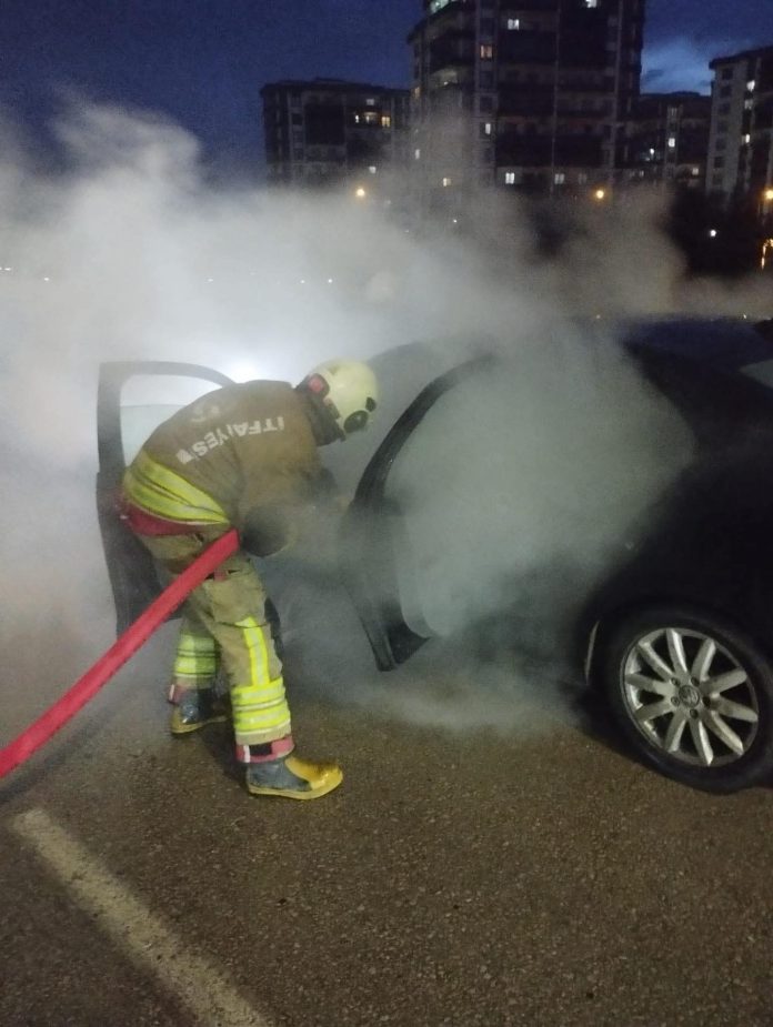 Hatay’da seyir halindeyken motor kısmı alevlere teslim olan otomobilde çıkan yangın söndürüldü.
