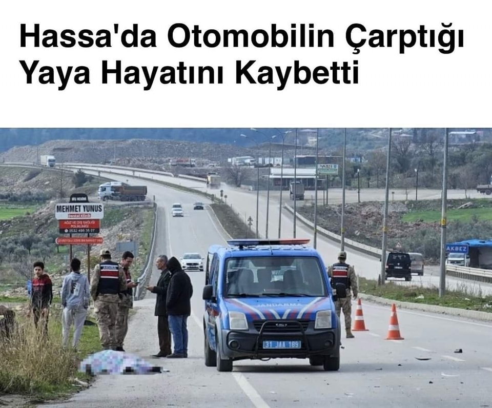 Kaza sonrası olay yerine gelen sağlık ekipleri yaralının hayatını kaybettiğini belirledi. Yaralının cenazesi Hassa Devlet Hastanesi morguna götürülürken, sürücü ise jandarma tarafından gözaltına alındı.