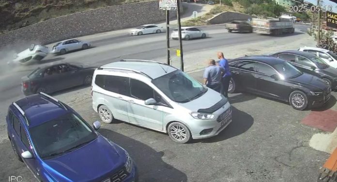 HATAY (İHA) – Belen ilçesinde 1 kişinin yaralandığı kazada otomobilin takla attığı anlar güvenlik kamerasına yansıdı.