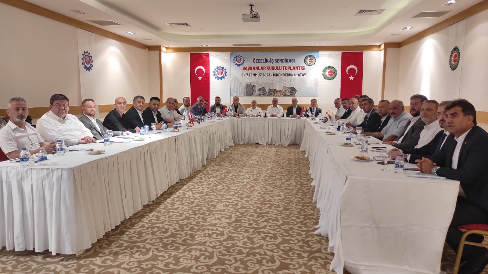 Özçelik-İş Sendikası Başkanlar Kurulu Toplantısı’nın açılışı bugün İskenderun’da basın açıklamasıyla gerçekleştirildi. Hak-İş Genel Başkan Yardımcısı ve Özçelik-İş Genel Başkanı Yunus Değirmenci başkanlığında ve Özçelik-İş Sendikası İskenderun Şube Başkanı Mehmey Güngör’ün ev sahipliğinde gerçekleştirilen toplantıya, Özçelik-İş Sendikası Genel Yönetim Kurulu Üyeleri, Denetleme ve Disiplin Kurulu Başkanları, şube başkanları ve şube yöneticileri, bölge başkanları, danışmanlar, İskenderun Şubesine bağlı işyerlerinin temsilcileri katılım gösterdi.