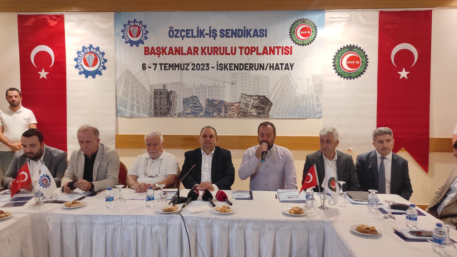 Anemon Otel’de tertip edilen ve 6-7 Temmuz tarihlerinde iki gün sürecek olan Başkanlar Kurulu Toplantısı öncesi basın mensuplarına açıklamalarda bulunan Hak-İş Genel Başkan Yardımcısı ve Özçelik-İş Genel Başkanı Yunus Değirmenci, konuşmasına depremde hayatını kaybeden vatandaşlarımıza rahmet, yaralı vatandaşlarımıza da acil şifalar dileyerek başladı.