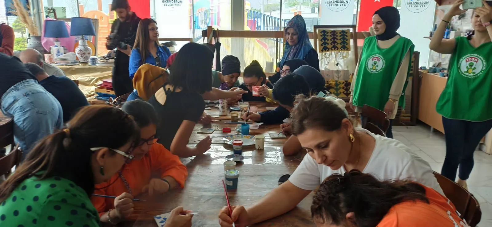 Kursiyerlerin anneleri, Dernek yönetimi tarafından düzenlenecek faaliyetlere davet edildiği Engelsiz Atölyede İskenderun Engeliyim Engel Tanımam Derneği ile Türkiye Down Sendromu Derneği üyeleri bir araya geldi çini üzerine yapılacak olan boyama çalışmalarını birlikte yaptılar.