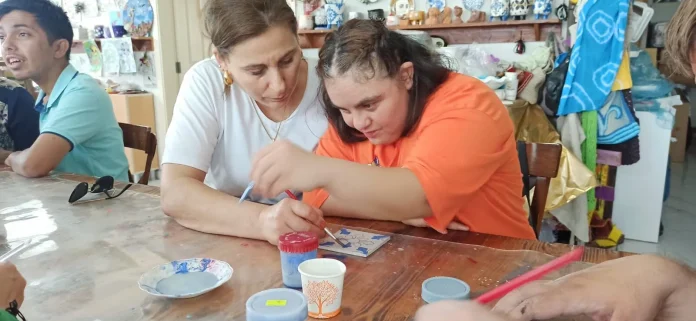 Kursiyerlerin anneleri, Dernek yönetimi tarafından düzenlenecek faaliyetlere davet edildiği Engelsiz Atölyede İskenderun Engeliyim Engel Tanımam Derneği ile Türkiye Down Sendromu Derneği üyeleri bir araya geldi çini üzerine yapılacak olan boyama çalışmalarını birlikte yaptılar.