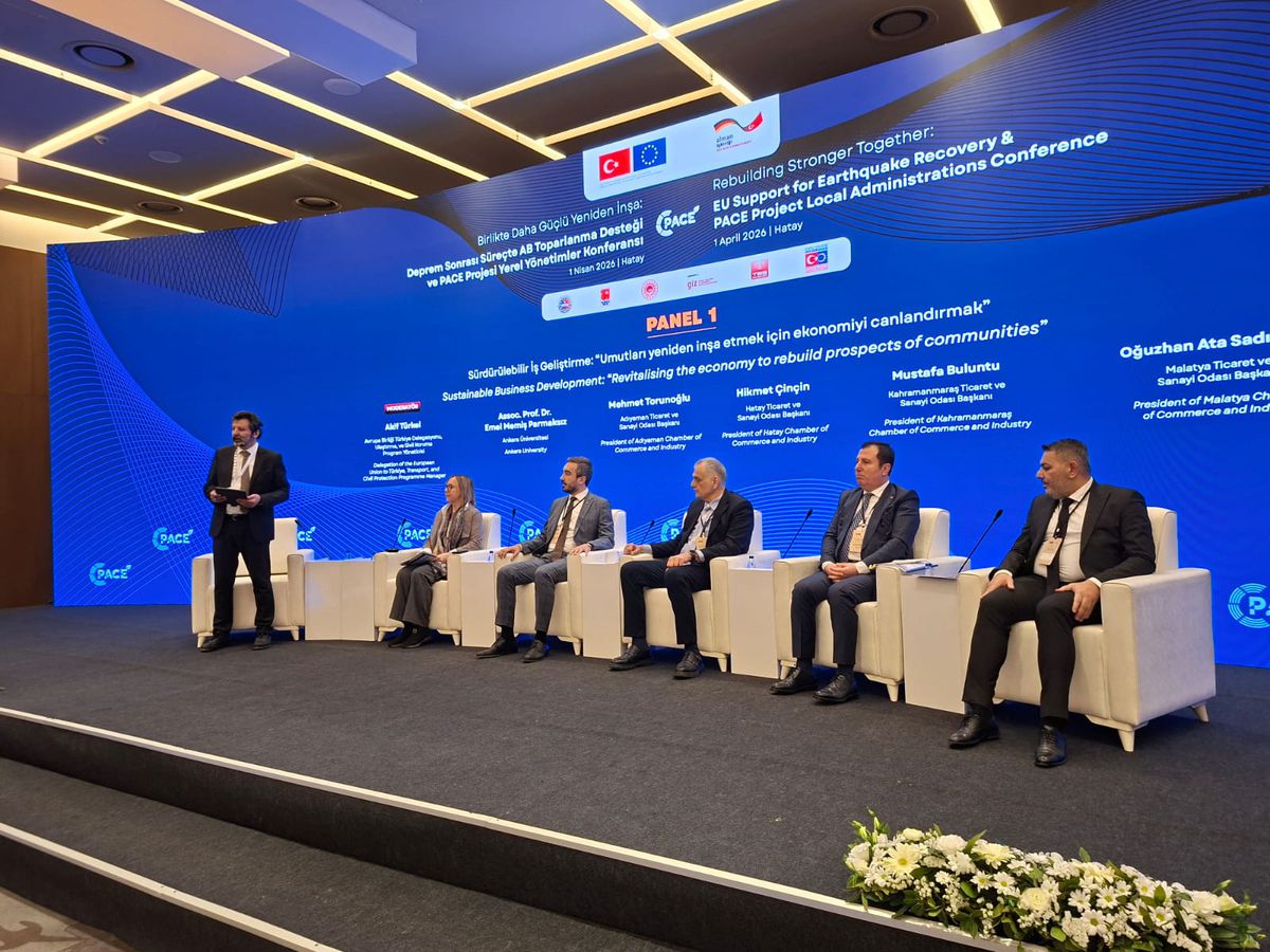 Antakya’da düzenlenen “Deprem Sonrası Süreçte AB Toparlanma Desteği ve PACE Projesi Yerel Yönetimler Konferansı” kapsamında gerçekleştirilen panelde, deprem bölgesinde ekonominin yeniden canlandırılması ve sürdürülebilir kalkınma stratejileri ele alındı