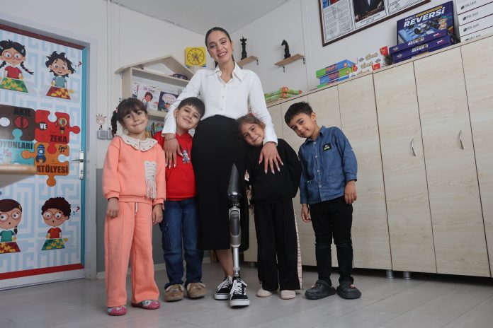 HATAY (İHA) – Hatay’da depremde babasını kaybeden ve enkazdan 46 saat sonra çıkartılan 27 yaşındaki genç öğretmen, protez bacağıyla geri döndüğü mesleğinde anaokulundaki minik öğrencileriyle birlikte yeniden yaşama tutundu.