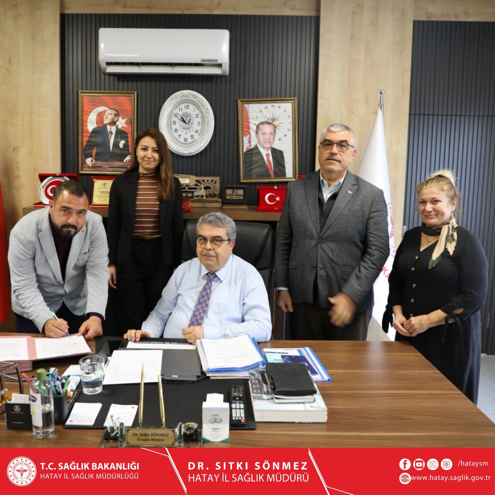 Protokol, Hatay İl Sağlık Müdürü Dr. Sıtkı SÖNMEZ, SEDYAD Başkanı Ethem ASKER, koordinasyonunda Halk Sağlığı Başkan Yardımcısı İlhami SÖNMEZ, SEDYAD Psikologu Gonca ÜNSAL ve Bulaşıcı Olmayan Hastalıklar Birim Sorumlusu Dr. Gülnur BARUTCU katılımlarıyla gerçekleştirildi.
