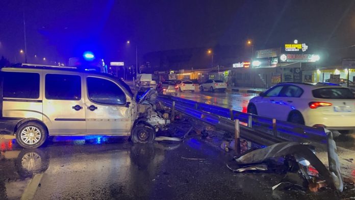 Refüje çarparak hurdaya dönen hafif ticari aracın sürücüsü yaralandı.